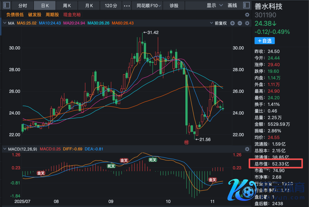 善水科技最新市值约52亿元。按照二东谈主对公司约46%的捏股比例谋划,这次离异波及约24亿元的上市公司股份分割。