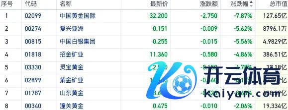 本日港股市集大幅下探,黄金股也遭受重挫。中国黄金外洋跌近8%,招金矿业跌近5%开云体育,紫金矿业跌逾4%,山东黄金跟跌近4%。
