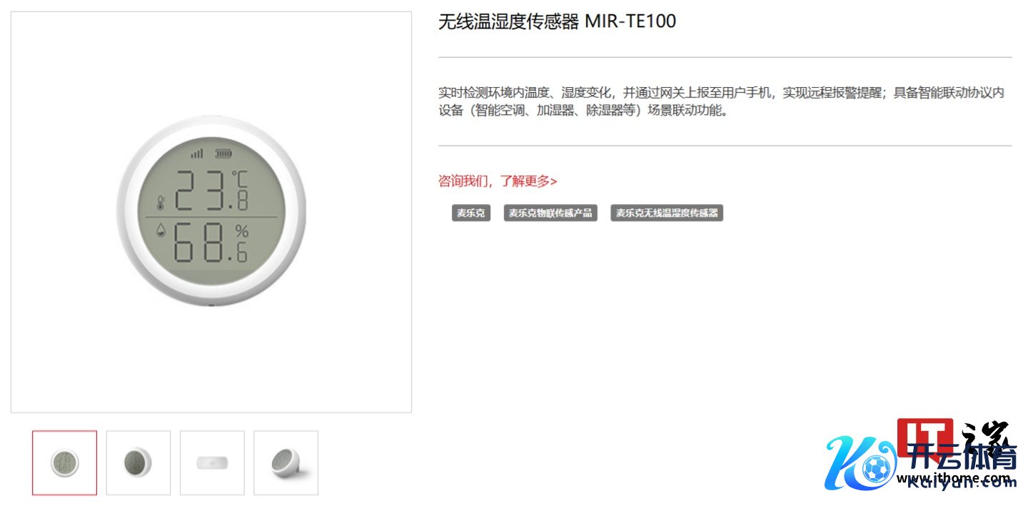 IT之家 12 月 3 日音书开云(中国)Kaiyun·官方网站,型号为“MIR-TE100-XS”的温湿度传感器产物现通过星闪定约认证。测试认证信息披露,该产物来自深圳麦乐克传感手艺有限公司。 麦乐克当今已发布无线温湿度传感器 MIR-TE100,该款产物可及时检测环境内温度、湿度变化,并通过网关上报至用户手机,完结长途报警请示;具备智能联动条约内建筑(智能空调、加湿器、除湿器等)场景联动功能。 IT之家查询获悉,当今星闪温湿度传感器已上线华为灵巧糊口 App,可搜索绑定。从官方给出的设置向