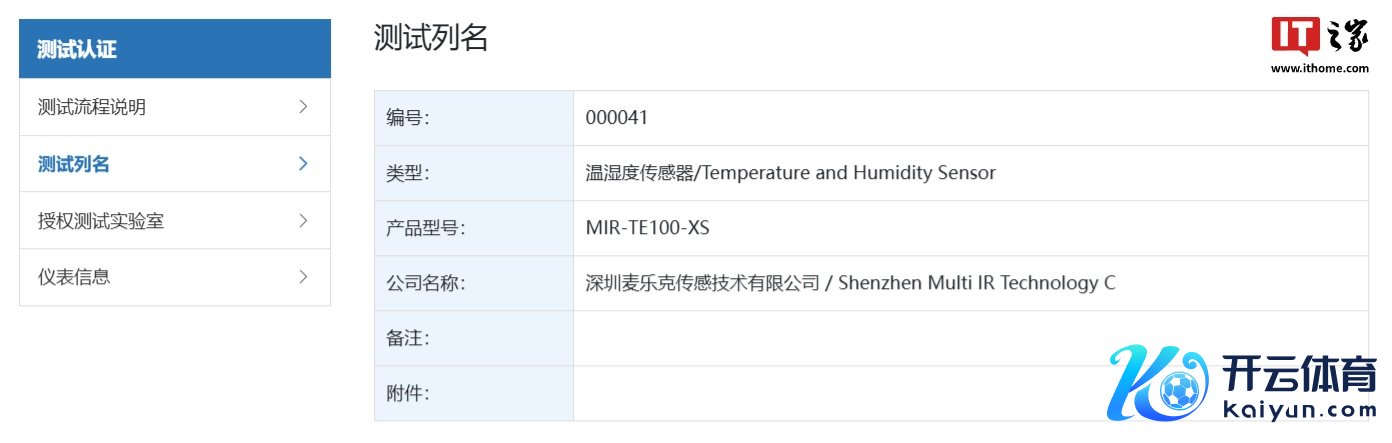 IT之家 12 月 3 日音书开云(中国)Kaiyun·官方网站,型号为“MIR-TE100-XS”的温湿度传感器产物现通过星闪定约认证。测试认证信息披露,该产物来自深圳麦乐克传感手艺有限公司。