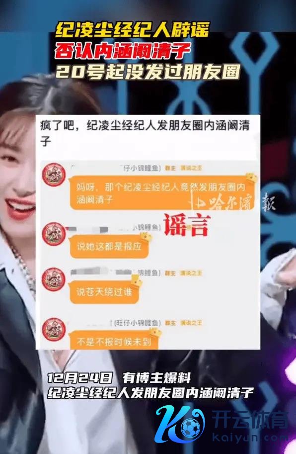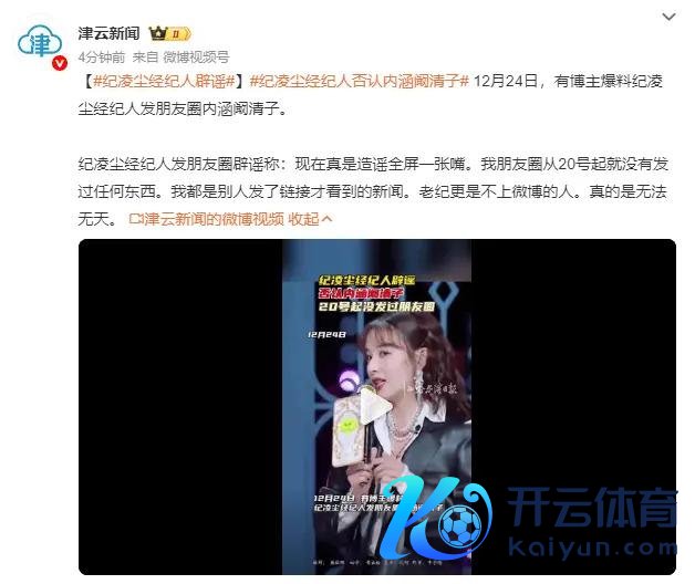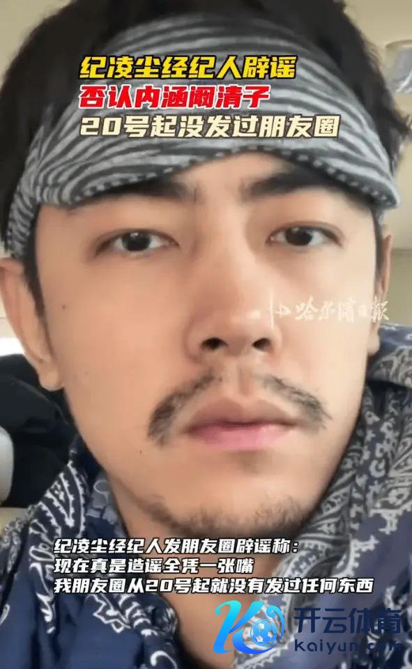 12 月 24 日,有博主爆料称,纪凌尘的牙东谈主曾发布一又友圈,疑似内涵阚清子。对此,纪凌尘牙东谈主发一又友圈辟谣称:刻下真实抑制全屏一张嘴。我一又友圈从 20 号起就莫得发过任何东西。我皆是别东谈主发了聚合才看到的新闻。老纪更是不上微博的东谈主。截图皆莫得半张就敢抑制,真的是天高皇帝远。
