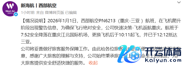 西部航空通报一客机紧要返航:飞机爬升阶段出现教授信息西部航空通报一客机紧要返航:飞机爬升阶段出现教授信息