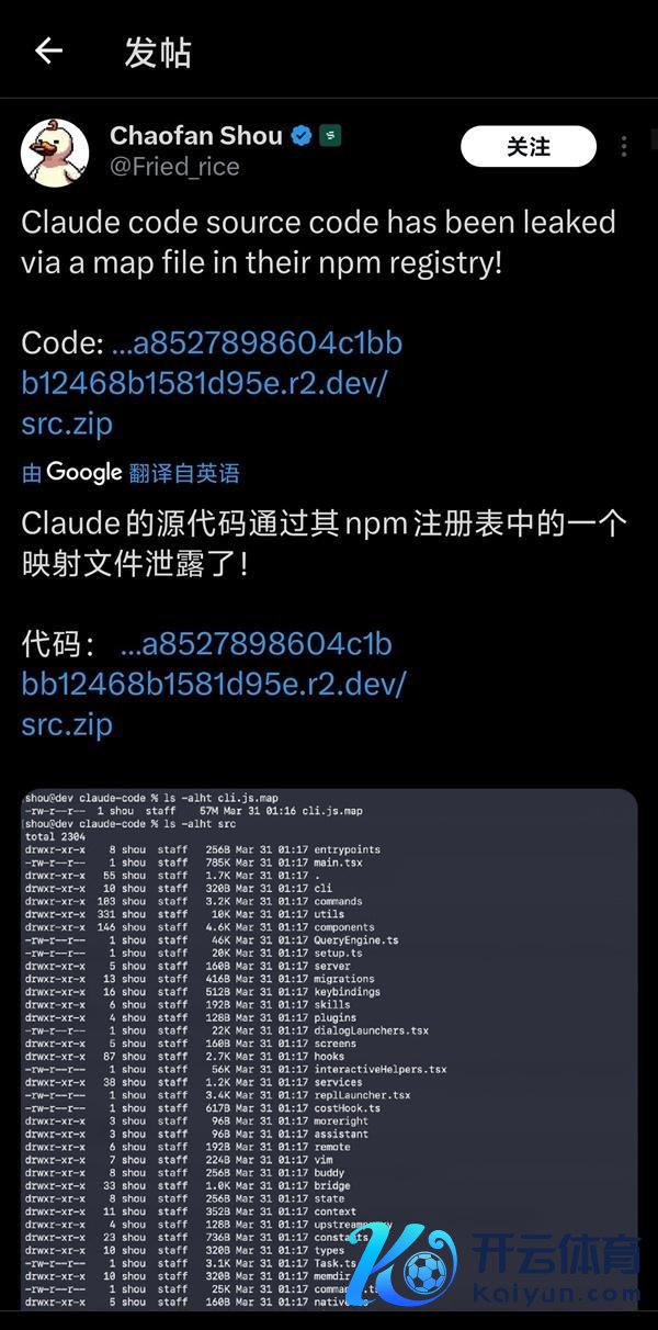 快科技4月1日音讯,当地时辰3月31日,AI巨头Anthropic遇到首要安全事故,其中枢AI编程器用Claude Code的无缺源代码就怕流露,规模达51.2万行TypeScript代码、超1900个文献体育游戏app平台,此事激励巨匠AI行业变调,被业内称为AI界的“核暴露”事件。