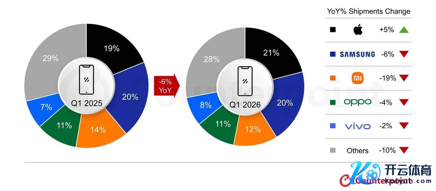 Global Smartphone Shipments Fall 6% YoY in Q1 2026 Amid Memory Crunch; Apple Leads Q1 for First Time开yun体育网